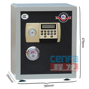 產品型號:威爾信MP-470 規格:(高)470×(寬)380×(深)350mm 厚度:門:10mm 箱體:4-6mm 密碼設置:1-8位 開啟方式:密碼+鑰匙/旋鈕 配置:主鑰匙3把、應急鑰匙2把、抽屜1個、層板1件、外接電池盒1個、膨脹螺絲2顆、電池4節、用戶使用手冊1份 凈重: 45公斤