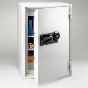 1小時(shí)UL防火測(cè)試及ETL多媒體儲(chǔ)存設(shè)備防火測(cè)試 手動(dòng)機(jī)械密碼鎖及鎖匙鎖 8支特硬門(mén)閂 可固定于墻身或地面 內(nèi)置儲(chǔ)物格 內(nèi)徑: 98.1 cm H x 47.5 cm W x 35.1 cm D 外徑: 121.0 cm H x 64.6 cm W x 60.8 cm D 重量: 283 公斤